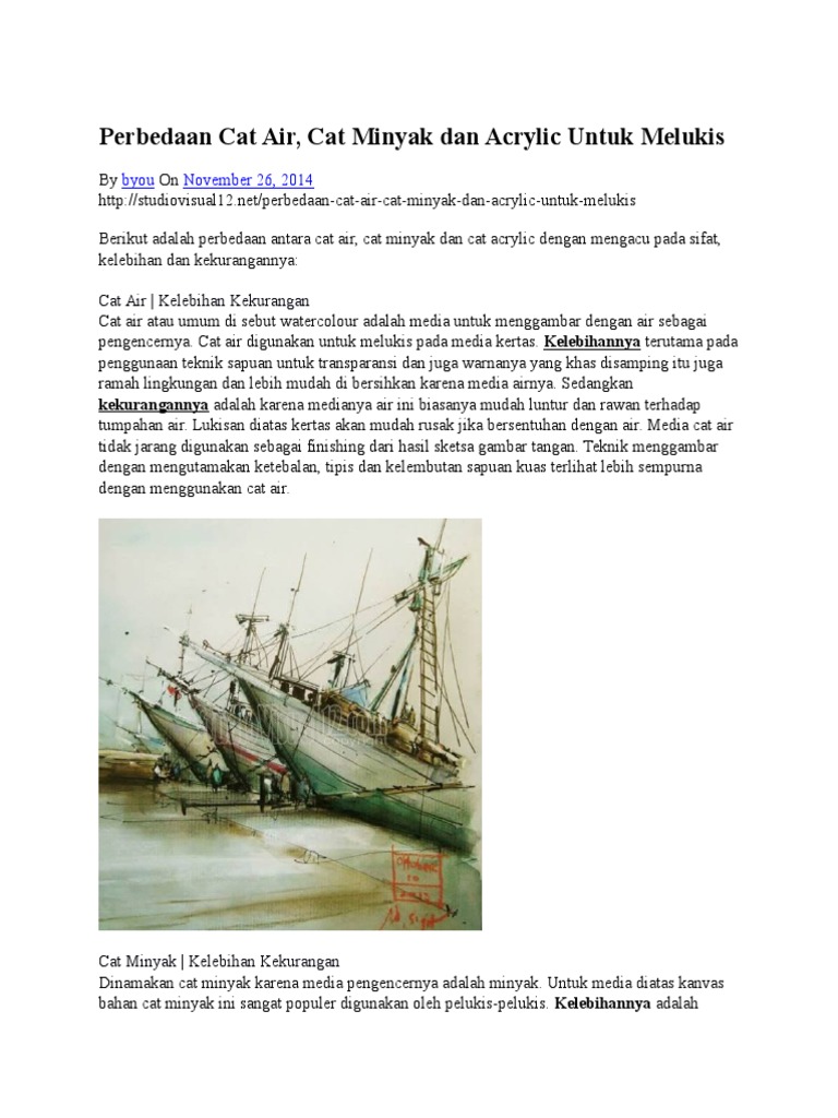Perbedaan Cat Air cat minyak dan cat akrilik . Sumber Gambar : id.scribd.com